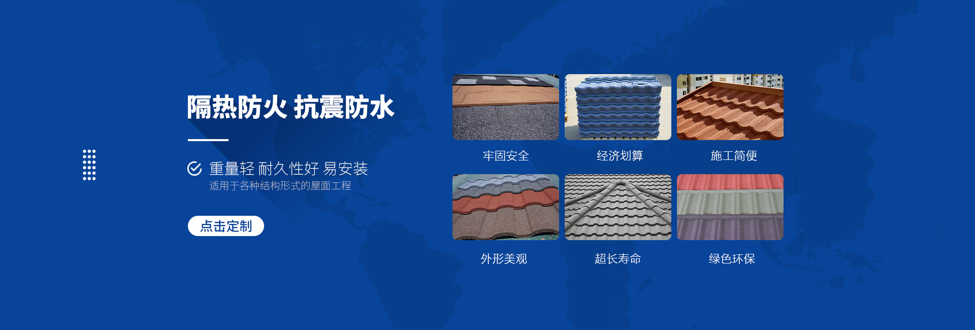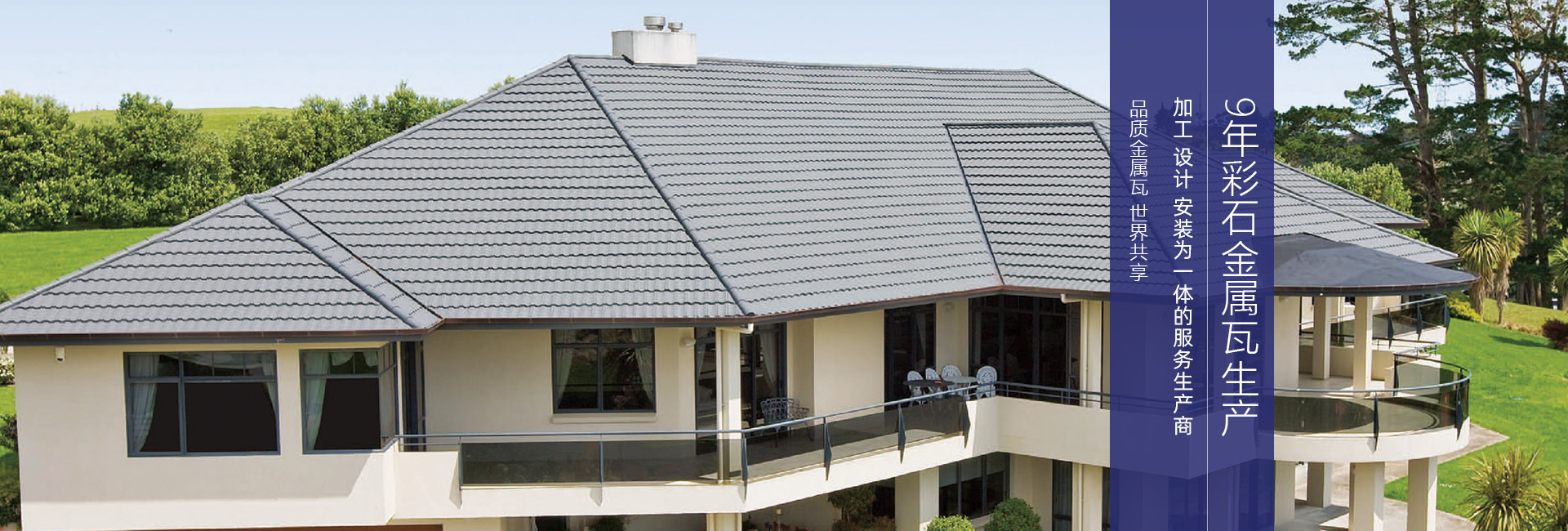 我們是一家彩石金屬瓦、設(shè)計(jì)、制造、銷售、安裝及服務(wù)于一體的公司 以過硬的產(chǎn)品質(zhì)量,令人滿意的銷售服務(wù),贏得您的支持與信賴。 彩石金屬瓦以防腐性能優(yōu)異的鍍鋁鋅鋼板為基板,以耐候性強(qiáng)的丙烯酸樹脂為黏合劑,以彩色沙礫為面層的新型屋面材料。